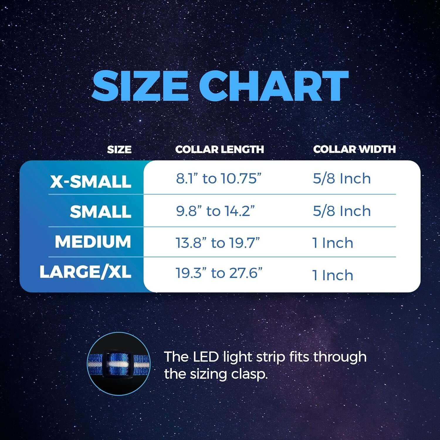 - X-Small: 8.1" to 10.75" (5/8" width)